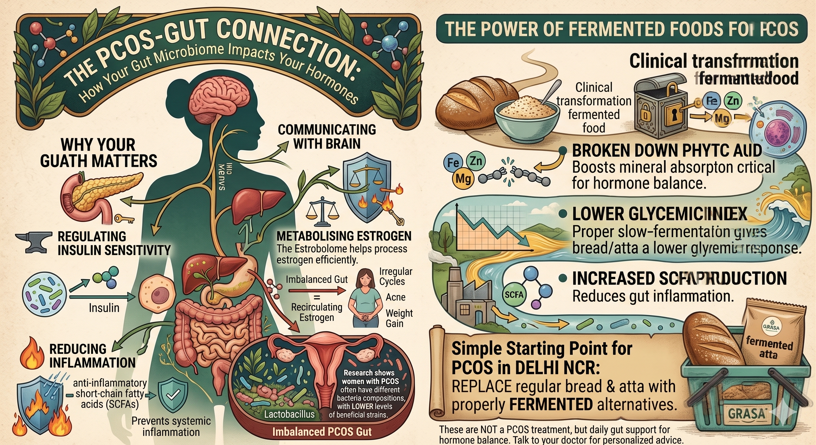 If you have PCOS and you are in Delhi NCR, here is the simplest starting point: replace the bread and atta in your kitchen with properly fermented alternatives. Not gluten-free, not multigrain, not millet-based — specifically slow fermented through live cultures.